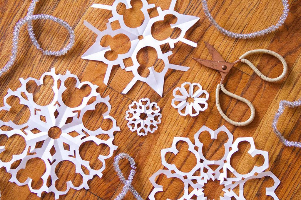 Let it snow in your lounge with a flurry of paper snowflakes stuffed with hidden Mickeys. Make certain to seize some kid-friendly scissors for the little ones!
