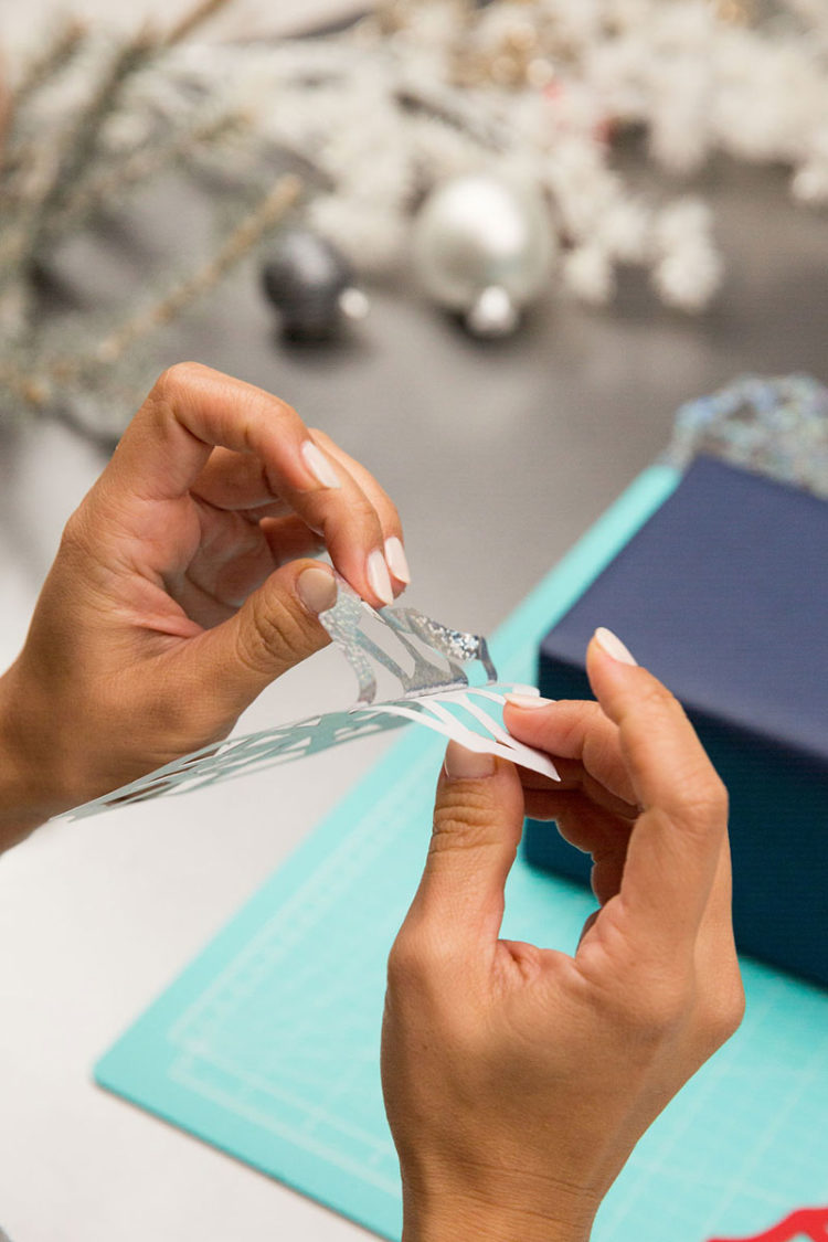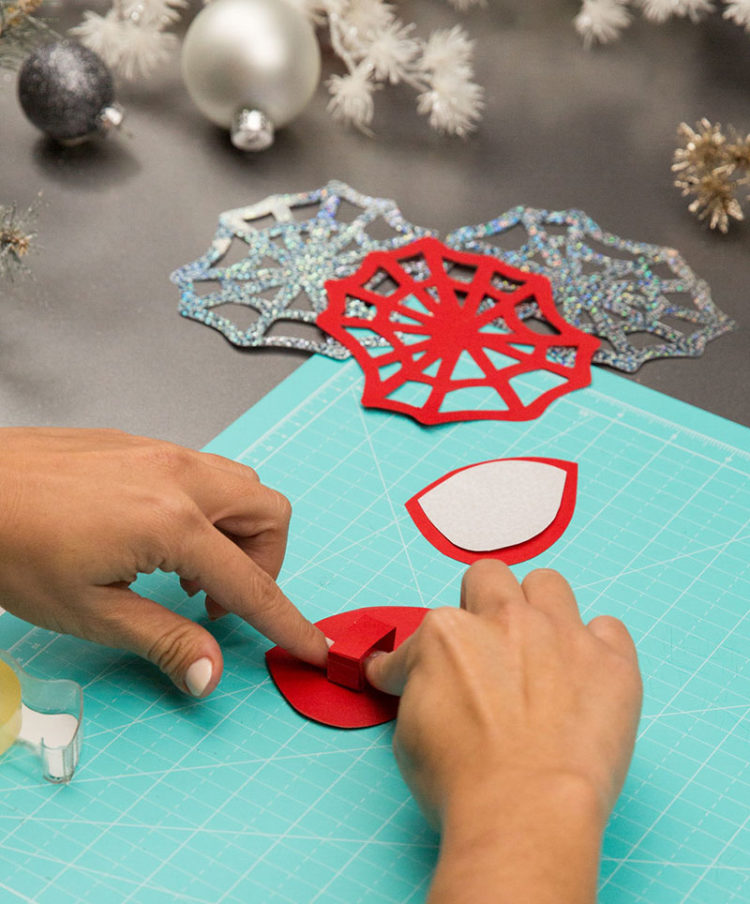 Trace two spider net shapes onto the again of holographic self-adhesive paper. Carefully minimize out with a craft knife.