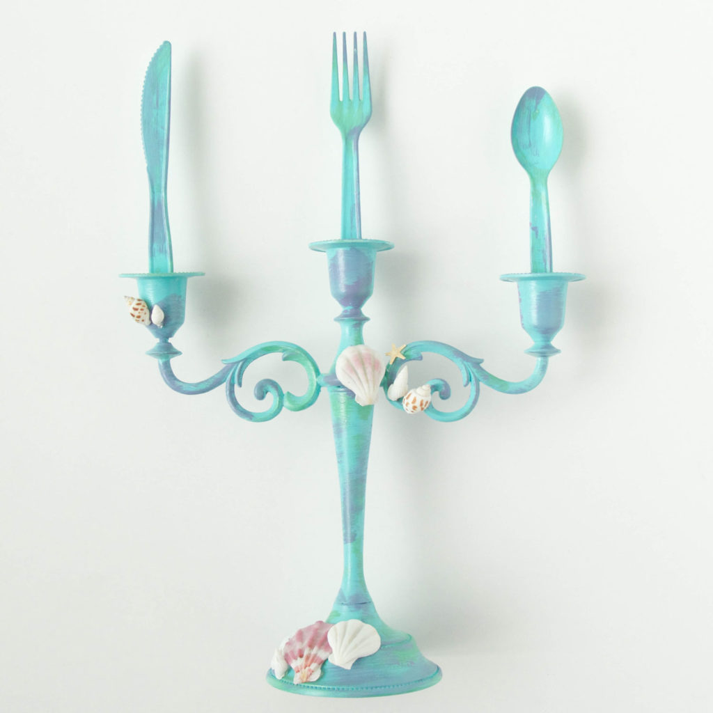 Seal the candelabra and the silverware with a coat of decoupage glue. This creates a extra completed look!